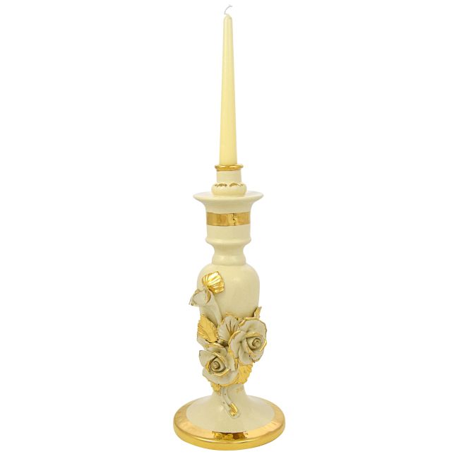 PORTA VELAS ROSE Candelabro de Cerámica Creaciones Artísticas Barrocas Oro 24k Made in Italy