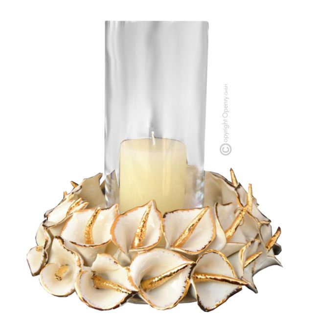 PORTAVELAS Candelabro artístico de cerámica estilo barroco con detalles en color oro de 24k Made in Italy