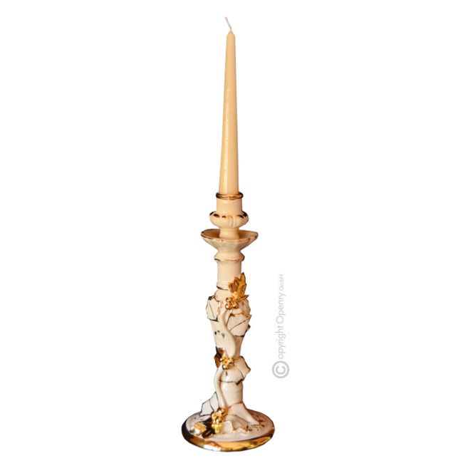 PORTAVELAS Candelabro artístico de cerámica estilo barroco con detalles en color oro de 24k Made in Italy