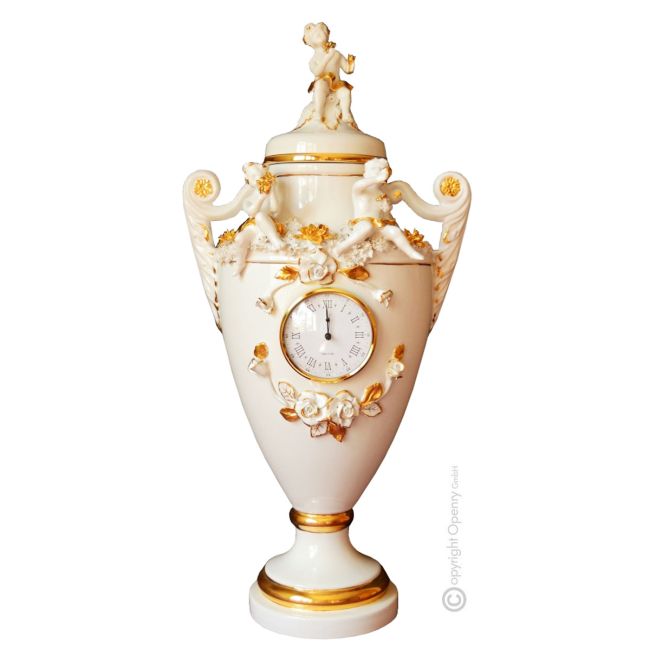 RELOJ DE MESA Cerámica artística estilo barroco con detalle en oro de 24k Hecho en Italia