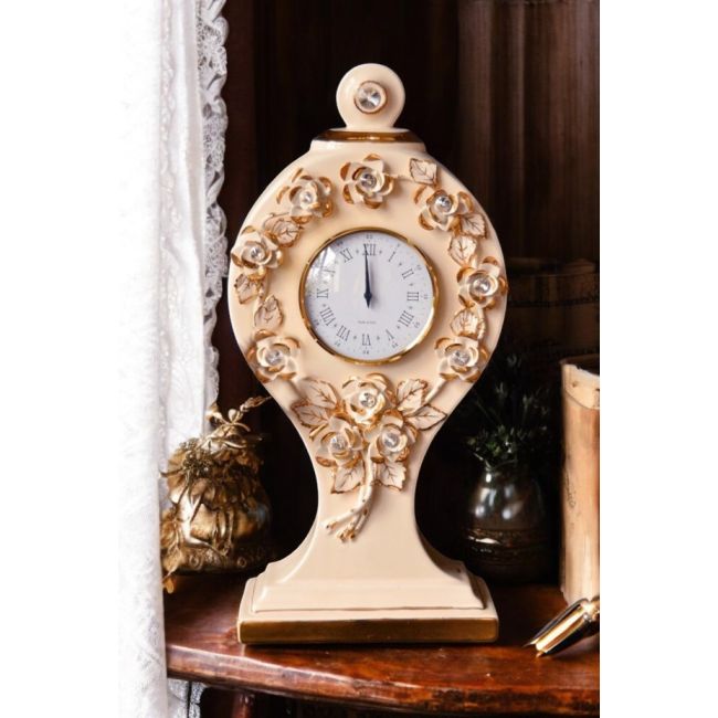 RELOJ DE MESA Cerámica artística estilo barroco con detalle en oro de 24k Hecho en Italia