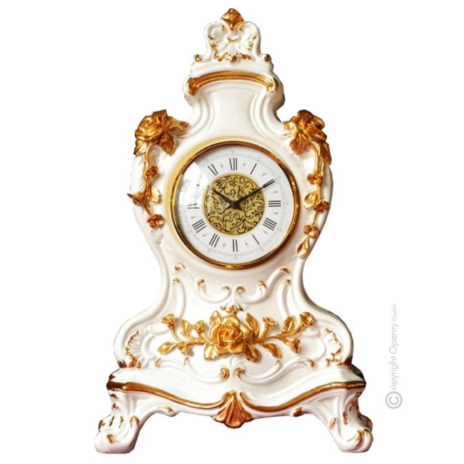 RELOJ DE MESA Cerámica artística estilo barroco con detalle en oro de 24k Hecho en Italia