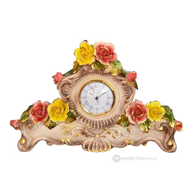 RELOJ DE MESA Cerámica artística estilo barroco con detalle en oro de 24k Hecho en Italia
