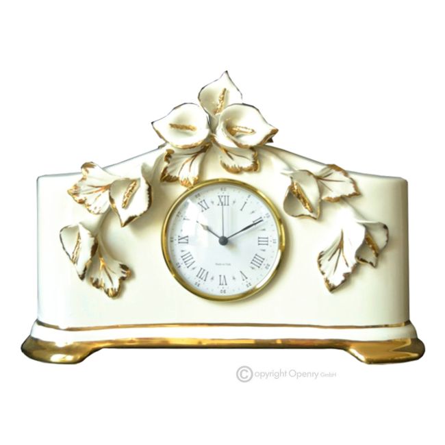 RELOJ DE MESA Cerámica artística estilo barroco con detalle en oro de 24k Hecho en Italia