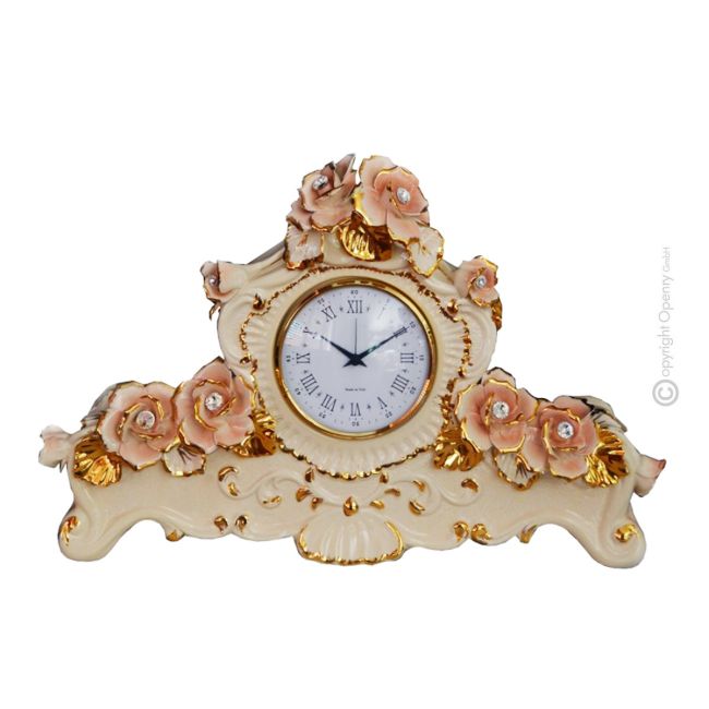 RELOJ DE MESA Cerámica artística estilo barroco con detalle en oro de 24k Made in Italy
