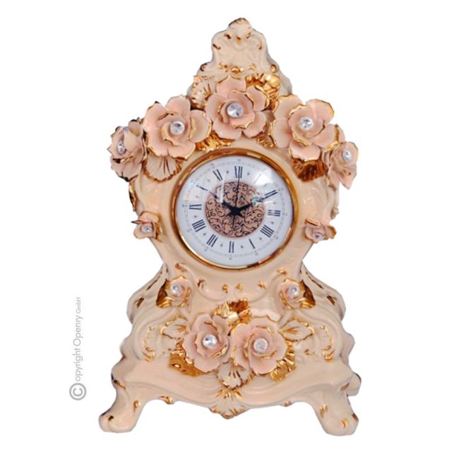 RELOJ DE MESA Cerámica artística estilo barroco con detalle en oro de 24k Made in Italy