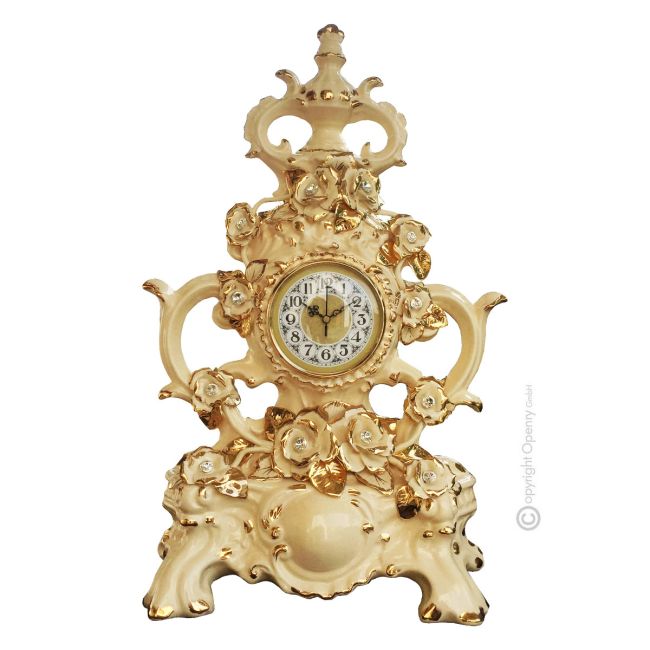 RELOJ DE MESA Cerámica artística estilo barroco con detalle en oro de 24k Made in Italy