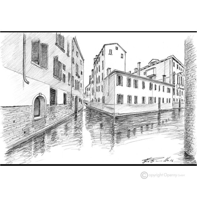 RIO DELLA FAVA - VENECIA Dibujo a lápiz sobre cartón moderno Made in Italy