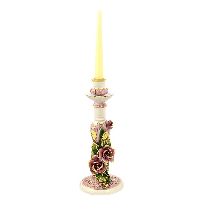ROSE Portavelas artístico de cerámica estilo barroco con detalles en color oro de 24k Made in Italy