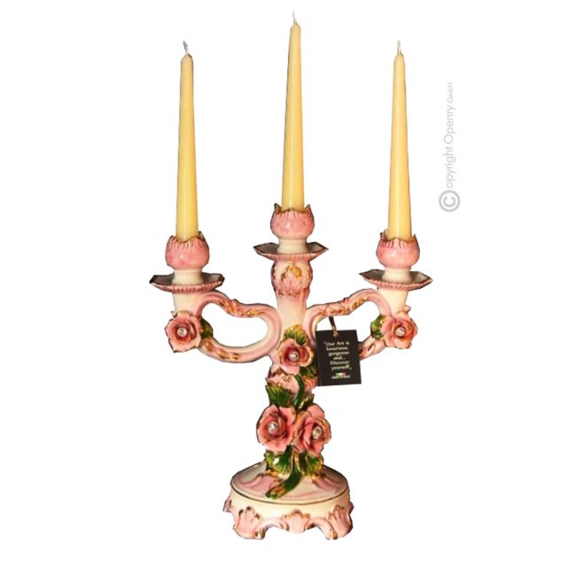 ROSE Portavelas artístico de cerámica estilo barroco con detalles en color oro de 24k Made in Italy