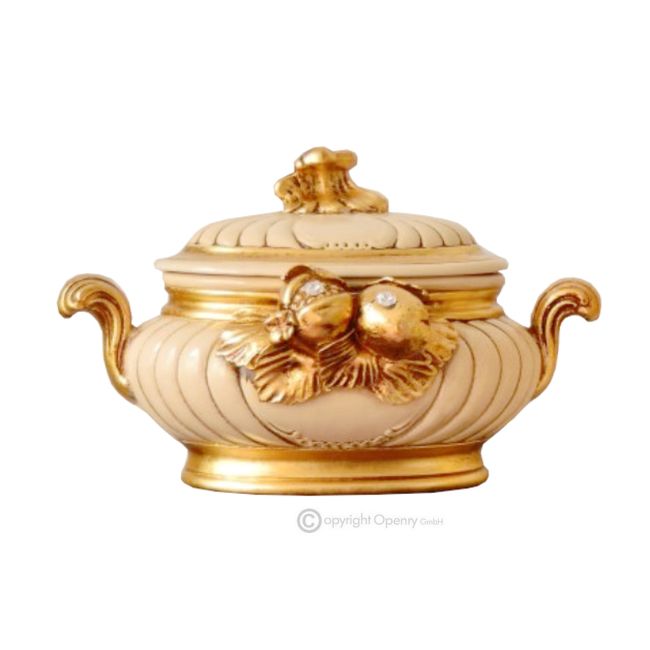 Sopera de SOPA Centro de mesa artístico de cerámica estilo barroco decoración, color oro 24k con cristales Swarovski