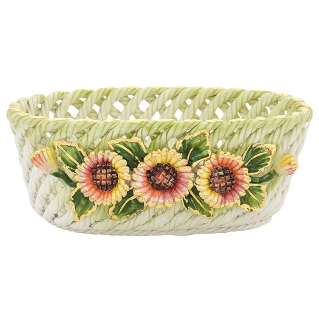 El PORTA JARRÓN DAISY 1 es una creación artística en cerámica, con auténtico baño de oro de 24k. Medidas aprox. Alto 9,5 x ancho 23 x profundidad 14 cm. Las creaciones artísticas de cerámica de la empresa familiar italiana FL Orgia incorporan, desde 1965, décadas de experiencia artesanal en la fabricación de cerámica, en el característico estilo barroco. Objetos de este estilo y de factura muy compleja decoraron los ambientes y mesas más aristocráticos de Europa entre los siglos XVII y XVIII. Tierra, Agua, Aire y Fuego. Estas son las palabras claves de la Cerámica, un material con una historia milenaria. El sustantivo tiene origen en el griego Keramos (tierra cocida) y representó algo fundamental para el desarrollo de las civilizaciones pasadas, desde las civilizaciones maya, griega y romana, hasta la actualidad. Técnicas de refinamiento y pintura también en tonos Oro y Platino embellecen estos maravillosos objetos, dándoles un carácter de gran prestigio y exclusividad. Cada pieza es única, con la pequeña pero efectiva variación producida por el talento creativo del momento, hecha a mano por maestros artesanos tan hábiles como raros. FL Orgia garantiza que todos sus productos están íntegramente fabricados y decorados en sus laboratorios italianos, única y exclusivamente puro Made in Italy de la más alta calidad. Tanto en su entorno privado como en sus espacios de trabajo, un objeto artístico de cerámica de FL Orgia tendrá un efecto muy decorativo y elegante, en el límite entre un elemento de decoración y una joya. El regalo ideal para ti, tu pareja o tus mejores amigos; No te lo puedes perder, por suerte sólo te separa un clic.