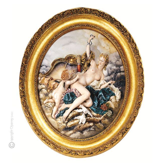 VENUS Y CUPID Cuadro en bajorrelieve de porcelana Capodimonte hecho a mano Made in Italy