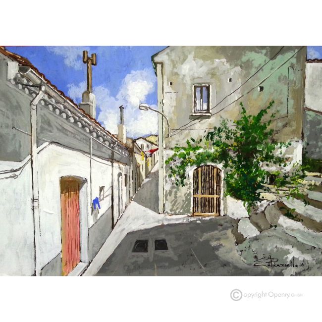 VISTAZO DE ORSARA Pintura acrílica moderna sobre lienzo Made in Italy