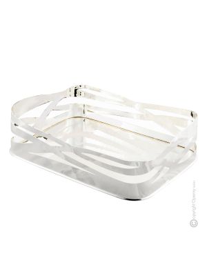 1. CESTA ONDA RECTANGULAR Cesta de centro de mesa bañada en plata artesanía hecha a mano Made in Italy