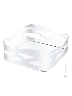 4. CESTA ONDA CUADRADA Cesta de centro de mesa bañada en plata artesanía hecha a mano Made in Italy