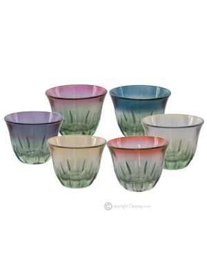 6. PRESTIGE Juego de 6 copas de espresso, vidrio de calidad superior, pintadas a mano, elegante diseño moderno.